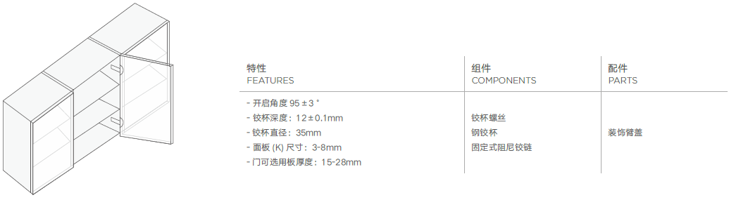 【M系列:35杯厚门板固装铰链】